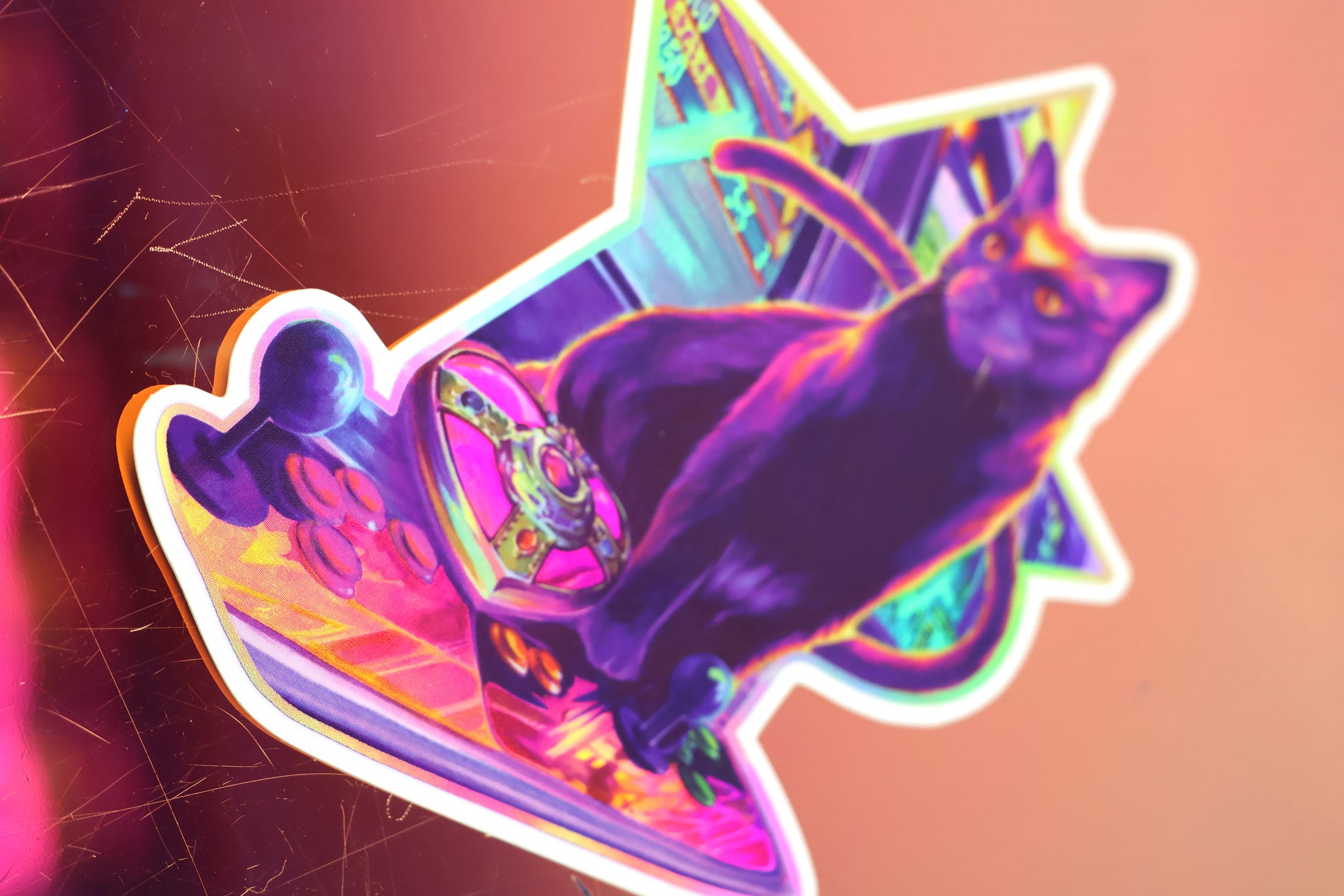 Full color sticker "Retro Hearts" reimagined on holographic rainbow details. Glossy finish, die cut vinyl. Perfect for your laptop, water bottle, or car!
